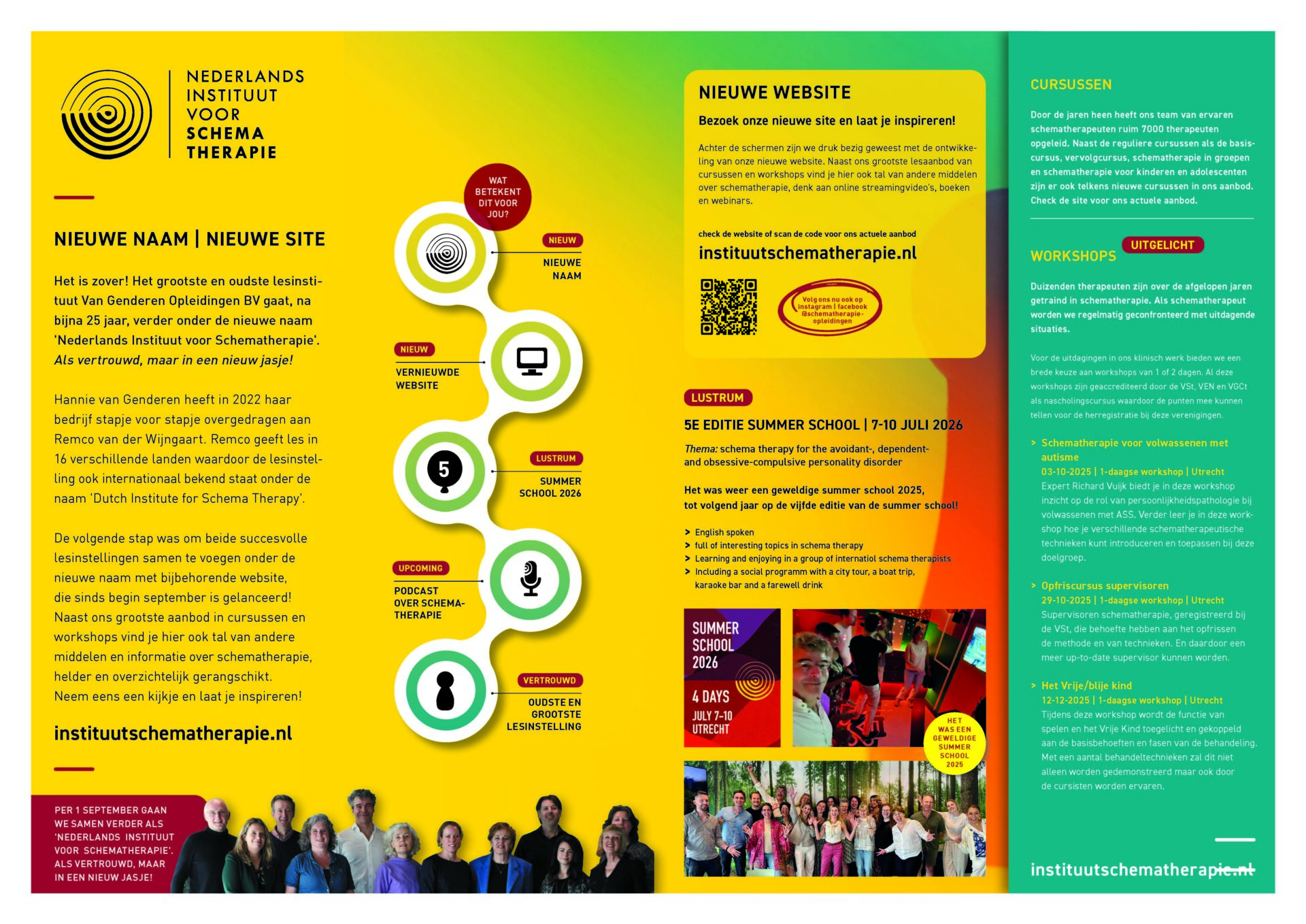 Met een team van 13 zeer ervaren schematherapeuten organiseren we cursussen en workshops op het gebied van schematherapie voor volwassenen, kinderen en adolescenten en partnerrelaties, individueel en in groepstherapie.